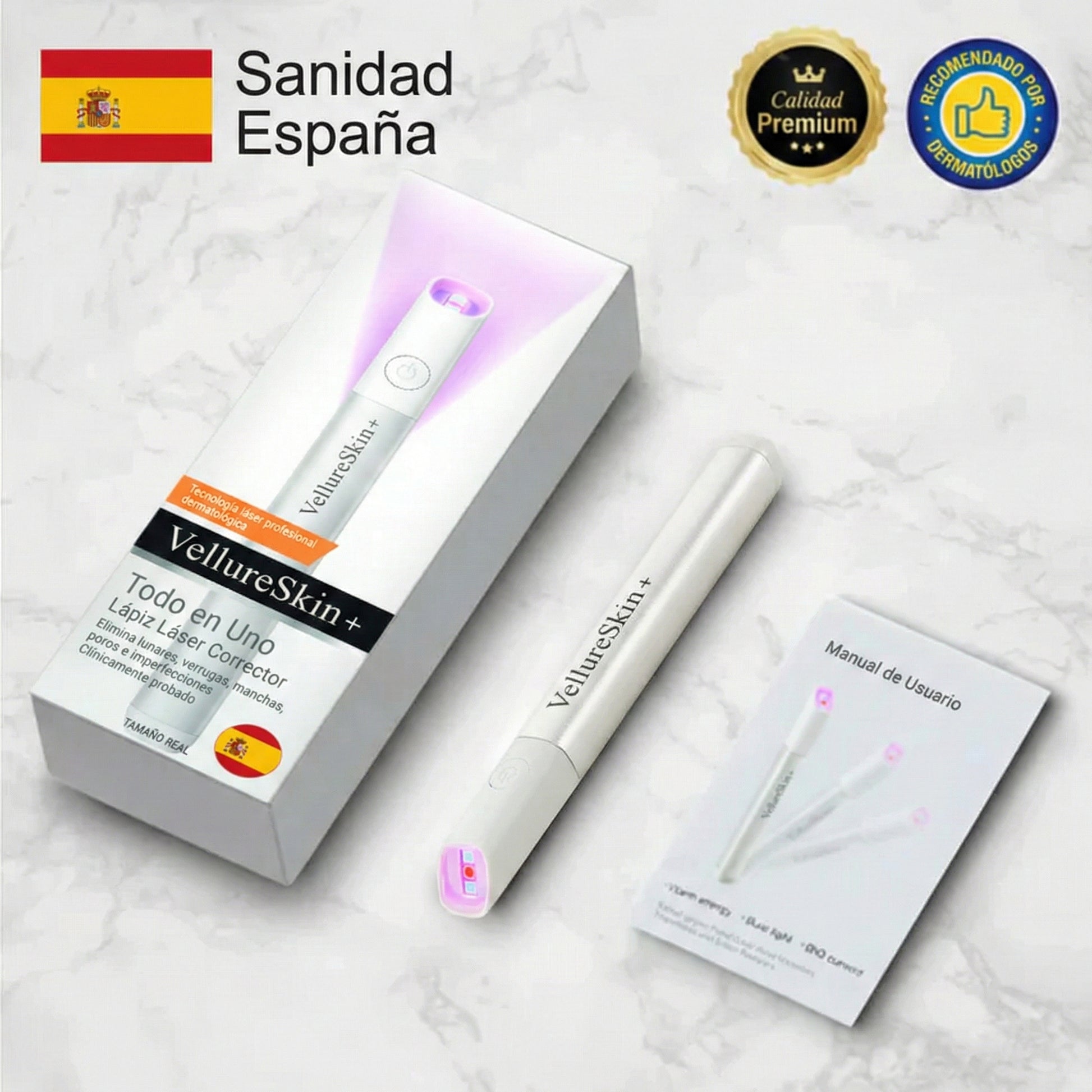 El VellureSkin+ All-in-One Laser Eraser Pen es el primer dispositivo portátil que utiliza tecnología de láser CO₂ de grado médico para ofrecer resultados profesionales en casa, por una fracción del costo.